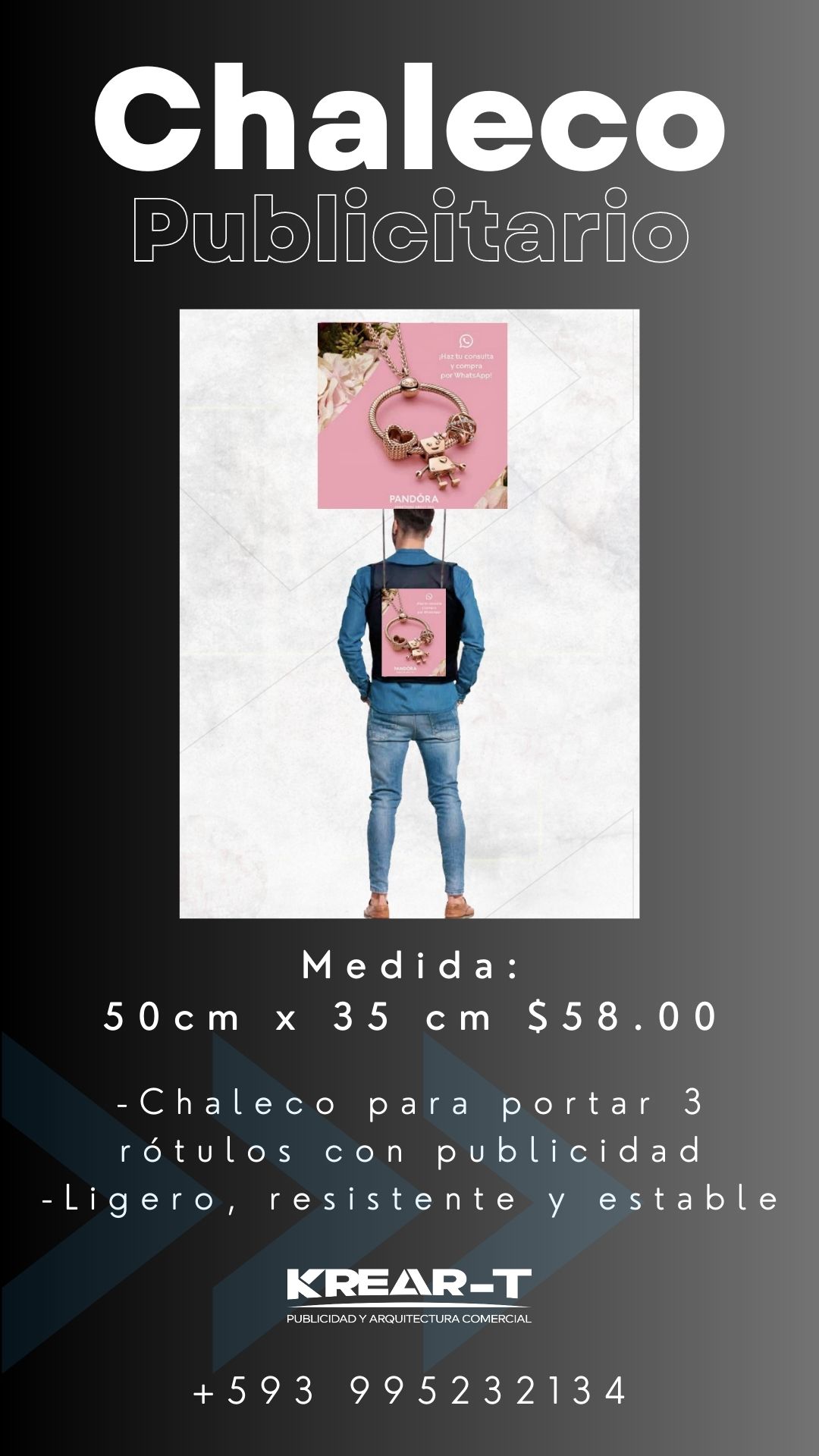 Chaleco para portar tres (3) rótulos con publicidad